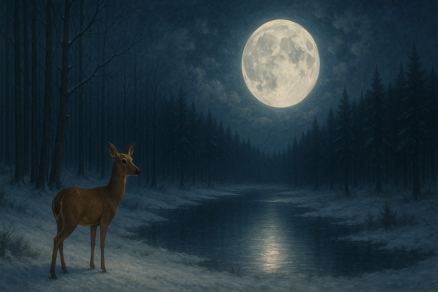 Thank you…I enjoyed reading everything and the meditation was just perfect…like a chef’s kiss :) — What you wrote about has added another layer of validation for me. Winters are cold and long and I have always dreaded them, until last August and Sophie my acupuncturist said to be “winter is a time of rest and reflection. A time to restore for the upcoming spring. Let your body and mind rest if you can. It is ok to rest, it isn’t being lazy, it is living ancient wisdom.” — an here I am on Substack, writing, reading, connecting and allowing myself to enjoy the time and not look for ways to busy myself. Again, thank you…and I will be watching for the white tail deer :) Kimberly >/<